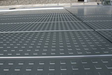 Konstrukce slunečních clon z děrovaného plechu (RV 1,5-3).